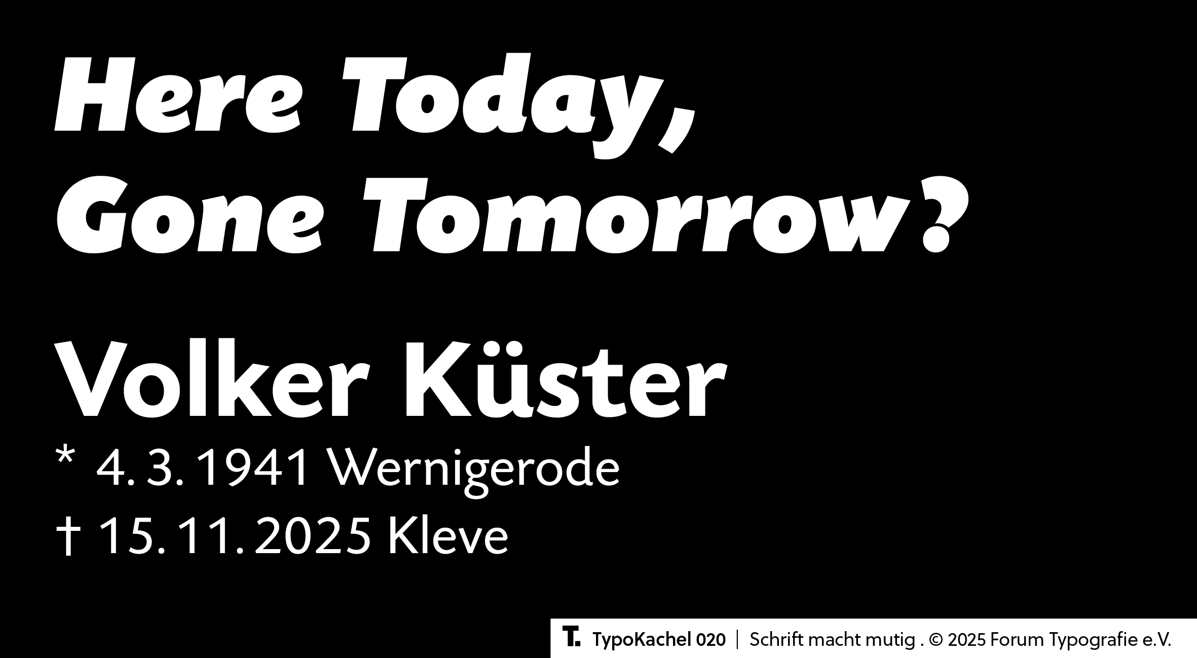 Mitte November verstarb mit Volker Küster ein Typograf, der die Frühzeit des Desktop Publishing wie auch die Anfänge des Forum Typografie mit geprägt hat.